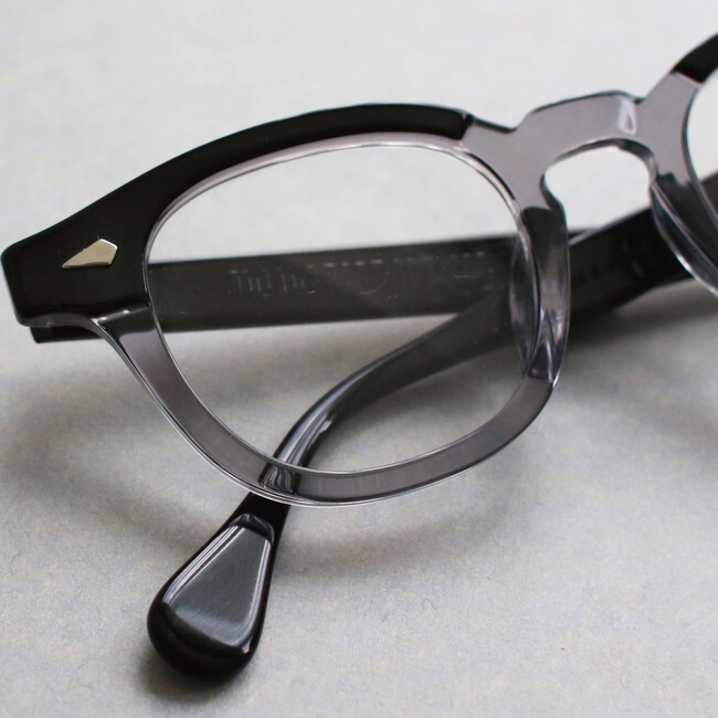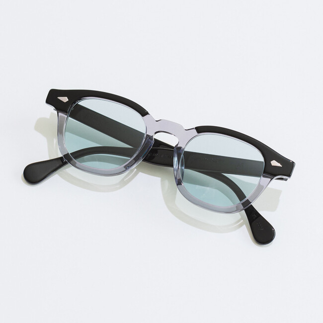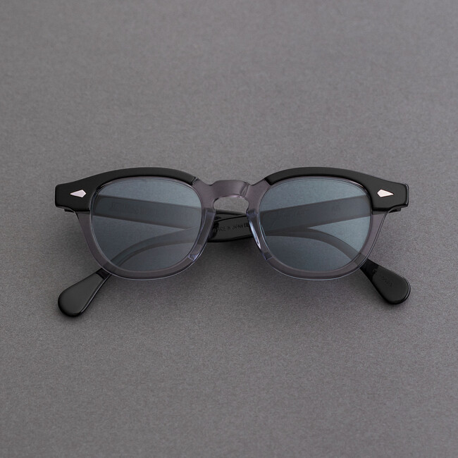 1950年代にアメリカで創業し、1970年代でその歴史に幕を閉じたと言われるタートオプティカルですが、仮に80年代以降も継続していたら?という仮説をPOKER FACEバイヤーチームが立て、様々な歴史的背景を読み解き誕生したのが、この別注カラー“グレースモークブラックブロウ”です。