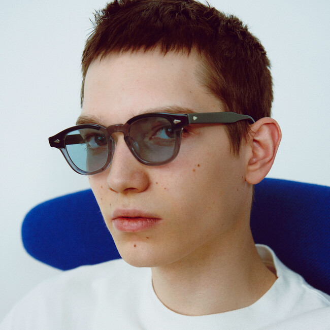 サングラスバージョンのレンズには、フレームカラーと同じく青みがかったグレーのGR45カラーを採用。程よく目が透けるミドルカラーです。