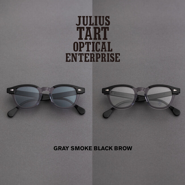 1950 年代初頭にアメリカで創業したタート・オプティカル・エンタープライズ社。アイウェア史に名を残す名品、「アーネル」や「FDR」などを生み出し、1970年代に幕を閉じた後も多大な人気を誇るアメリカンビンテージを代表するアイウェアブランドでした。その創立者ジュリアス・タート氏の意思を継ぐブランドとしてジュリアス・タート氏の甥のリチャード・タート氏と共に新規に創設したブランドが「JULIUS TART OPTICAL」です。リチャード氏はタート・オプティカル社のファクトリーやマーケティングに関わった実績を持ち、数多くの資料を保有し、唯一ジュリアス氏の意思を継ぐ存在となります。ジュリアス氏の残した膨大な資料を元に現代の優れた技術と実績のある素材を使用し、新たに生み出されるフレーム達は今までに無い存在感を感じる事でしょう。ジュリアス氏の世界観を残しつつ、古き良き時代の復刻と進化をJULIUS TART OPTICAL では実現していきます。