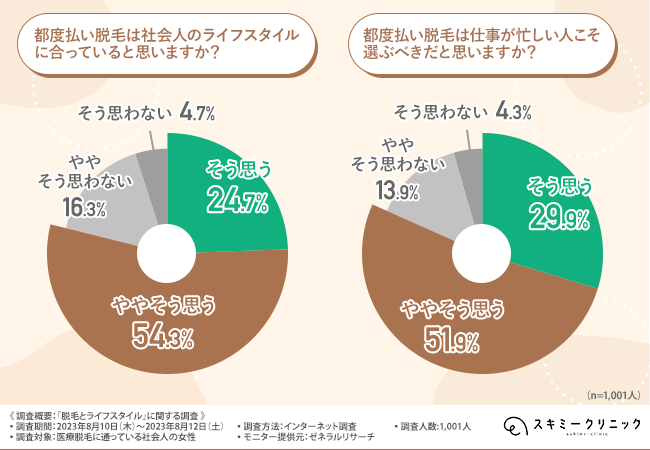 都度払い脱毛は社会人に合っていると思う人はおよそ8割 忙しい人ほど通うべきという意見は8割以上に
