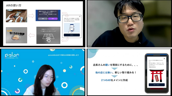 本日開催された中間発表会の前半では、生徒によるAR作品の途中経過をプレゼン形式で披露しました。また、講師陣からのフィードバックを受け取り、作品のブラッシュアップに向けた意見交換が行われました。