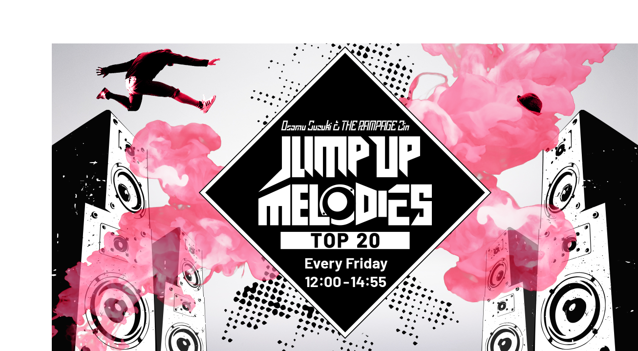 JUMP UP MELODIESとは、鈴木おさむと、次世代を担うアーティストTHE RAMPAGEのリーダー・陣が、「急上昇なトピック」を届ける2時間のプログラム!旬なゲストが語る、ここでしか聴けない貴重秘話から、いまSNSを中心に話題となっている注目の音楽まで、金曜昼に「今」をフル充電!あなたをバージョンアップして充実した週末を迎えましょう!