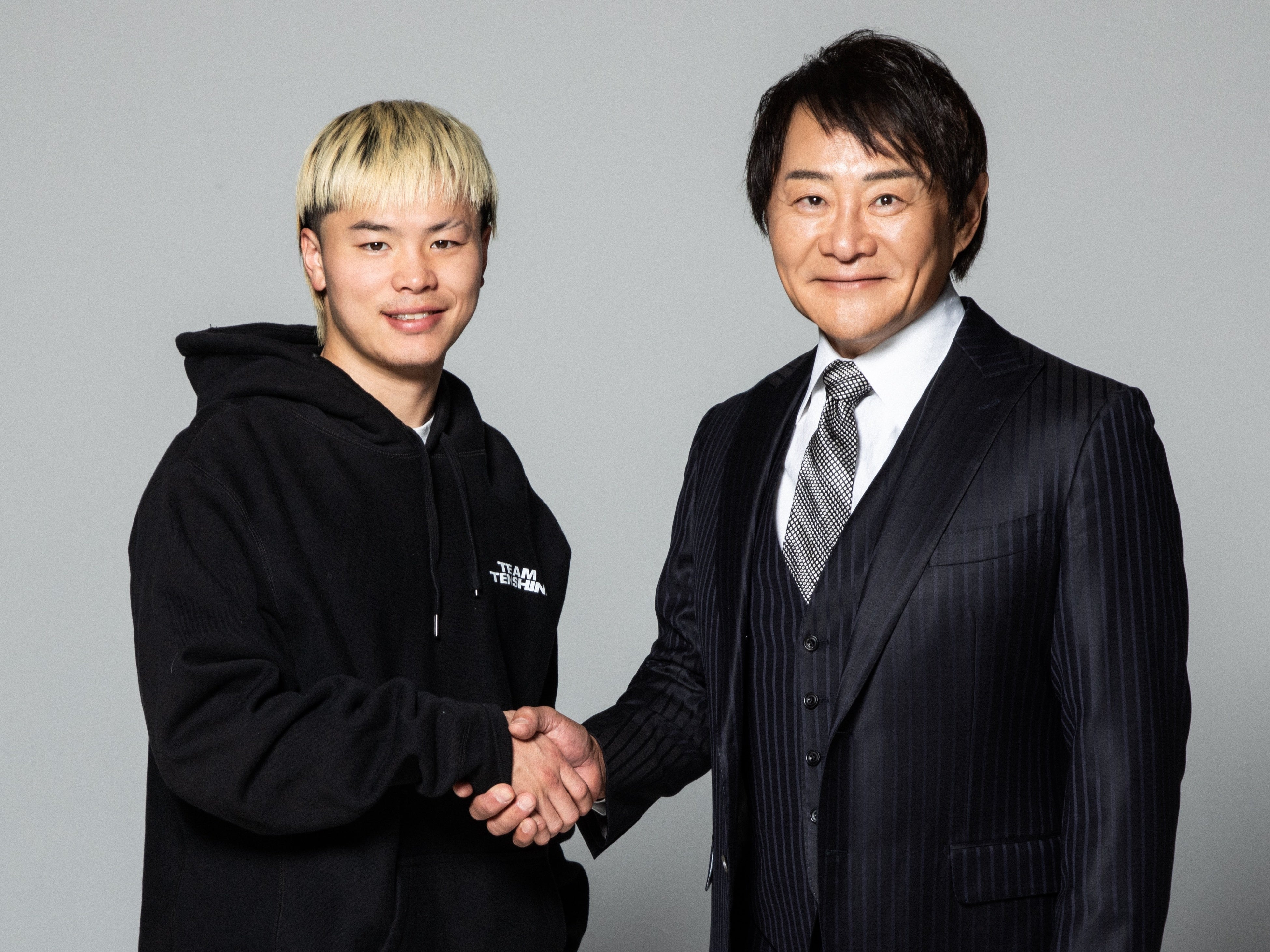 左:那須川天心選手(帝拳ジム)、右:株式会社ベガスベガス 代表取締役社長 高橋秀之