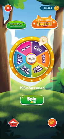 そのコインを使ってくじを回すことで、ノーマルからハイパーレアまでのランクに分けられた猫を獲得することができます。獲得した猫は自分だけのCat Roomで飼うことができます。Cat Roomではランク分けされた部屋で猫が待っていて、おもちゃなどを与えることができます。