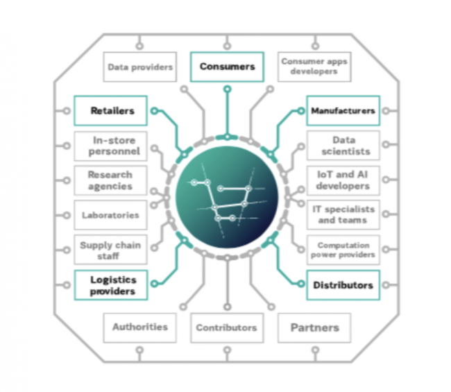 買い物客と消費者は AI で動くパーソナライズドされた買い物アシスタントを利用することができます。このアプリケーションをスマホやタブレットで使うことによって、将来の買い物のやり方が大きく変わることになります。消費者は、自分自身の好みや条件に合わせて買い物を行うことができ、ブロックチェーンによって担保された各商品の関連情報や、機能、素材情報、その他の購入客のレビュー情報などを鑑みた上で、製品選択を簡単に行うことができるようになります。一方で、事業者は B2B サービス側に対するデジタルアシスタントを利用することができます。