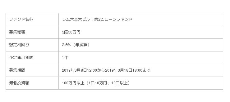 ■「レム六本木ビル:第2回ローンファンド」の概要