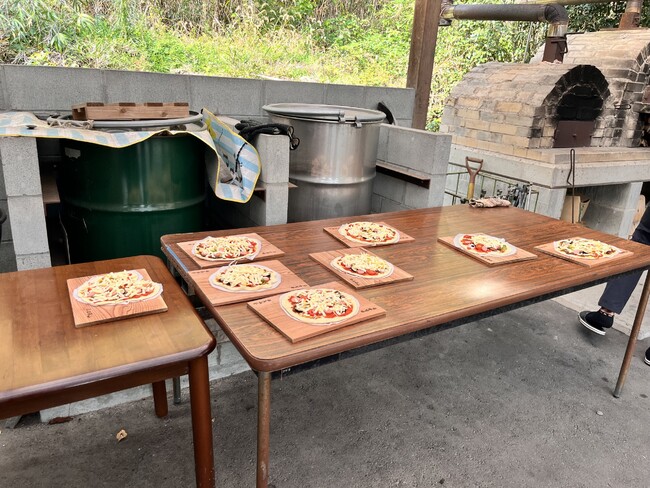 ・昼食〜周辺観光:昼食は窯を使ったピザ焼き体験。地域で採れた野菜を使った自家製のトマトソースと柚子味噌を堪能。昼食後は、施設近くの元保育所を改築した陶芸工房で陶芸を体験。