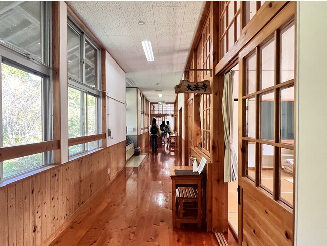 ・執務:「ほっと平山」は小学校の旧校舎を改築した体験型宿泊施設。2005年に平山小学校が廃校になった後、地域住民らが運営委員会を立ち上げ、宿泊施設として再生された。隣接する体育館の利用も可能。地元産の木をふんだんに使った木造校舎で、職員室や黒板など随所に面影が残された施設の教室で執務に取り組む。