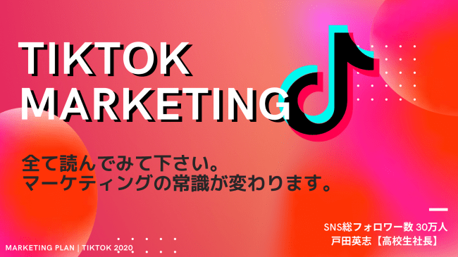10代1の成功者、"戸田英志"が自身のインスタグラムにて、日本人史上初の『TikTokマーケティング』を企業向けに行う事を公式発表。