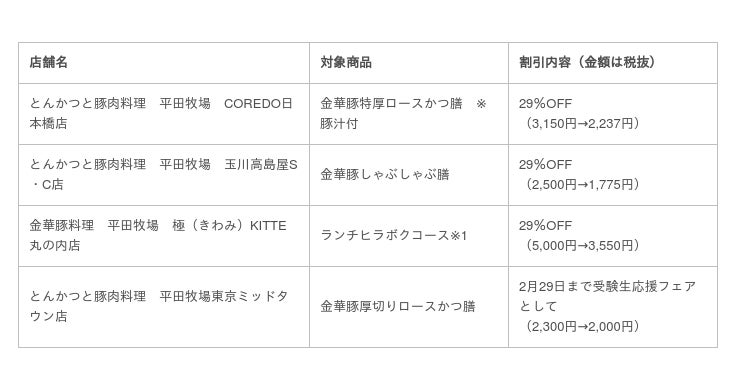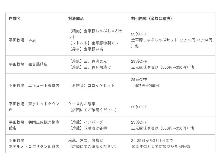 〜2月29日は、平田牧場外食・小売店舗各店、公式通信販売がお得です!〜