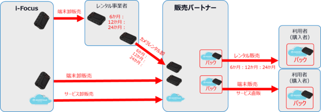 販売パートナーは、端末のレンタル、卸販売の選択が可能であり、クラウドサービスの提供についても、利用者のニーズに合わせて販売方法や販売価格を自由に設定できます。