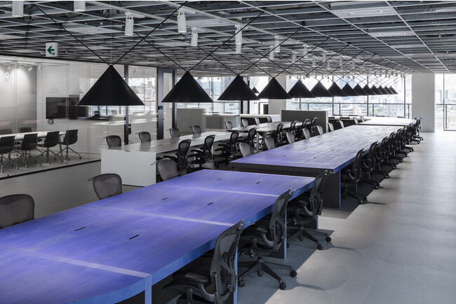 リモート勤務者が多いことを前提として、全席フリーアドレス化