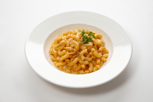 原材料名:マカロニ(国内製造)、粉末油脂、乳等を主原料とする食品、でん粉分解物、プロセスチーズ(ナチュラルチーズ、食塩、酵母エキスパウダー)、きはだまぐろ、半個体状ドレッシング、砂糖、バター、食塩、ブラックペッパー、野菜エキス/加工でん粉、調味料(アミノ酸等)、乳化剤、セルロース、酢酸Na、安定剤(ローカスト)、カロチノイド色素、香料、(一部に卵・小麦・乳成分・大豆を含む)