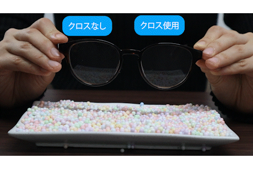 「花粉ガード&曇り止めクロス」は、眼鏡などのレンズを拭くことでレンズに親水性の被膜ができます。これにより静電気が発生しにくくなり、花粉などのホコリが付きにくくなります。