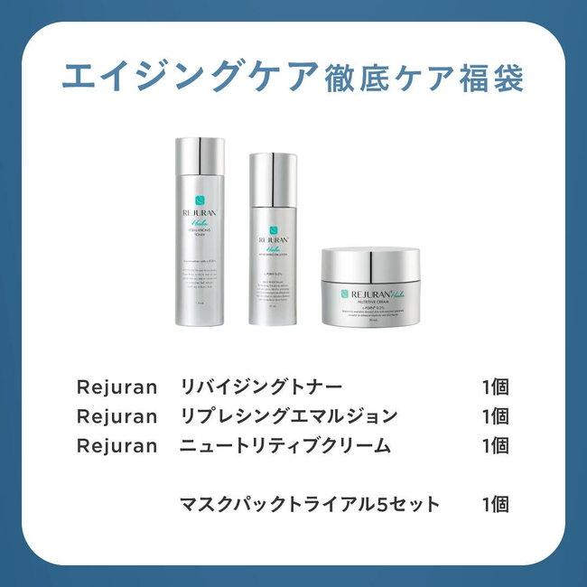 韓国の皮膚科でも販売されている「Rejuran(リジュラン)」のトナー、美容液、クリームの3点で構成されているスペシャルなエイジングケア限定福袋です。