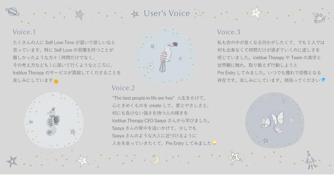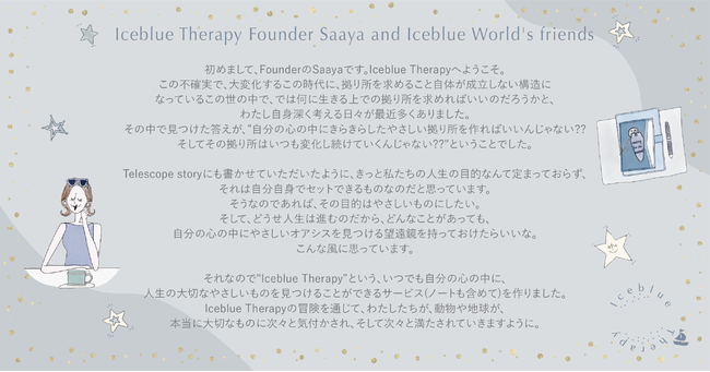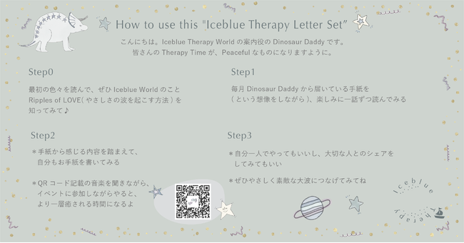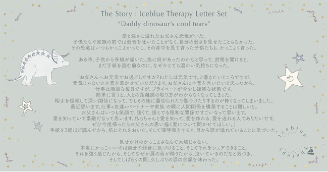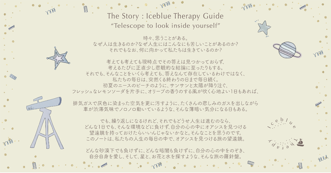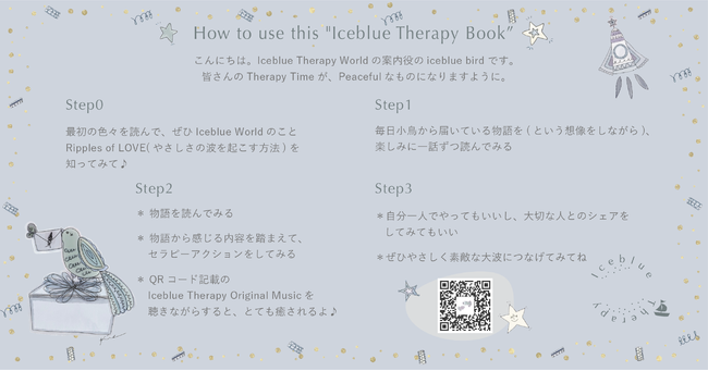 また、会員の方々にお送りする「Welcome Kit」は、「Iceblue Therapy Story Book」「Iceblue Therapy Guide」「Iceblue Therapy Letter Set」「Iceblue Therapy Card」の4つから構成されます。