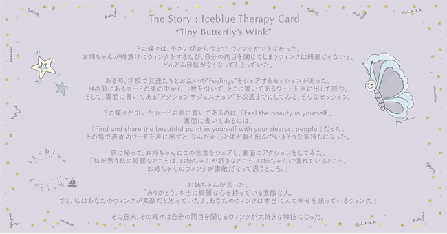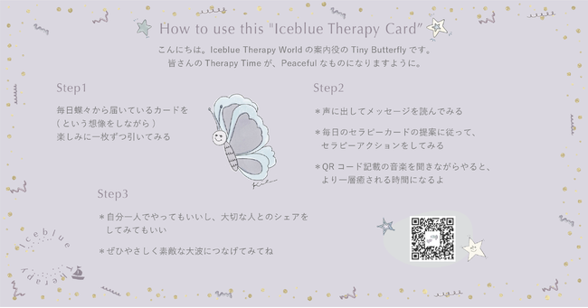 「Iceblue Therapy Card」は、あなたのためのセラピーカードです。カードを引くと、まるでセラピーを受けたかのような穏やかで軽やかな気持ちに、蝶々が守り導いてくれます。