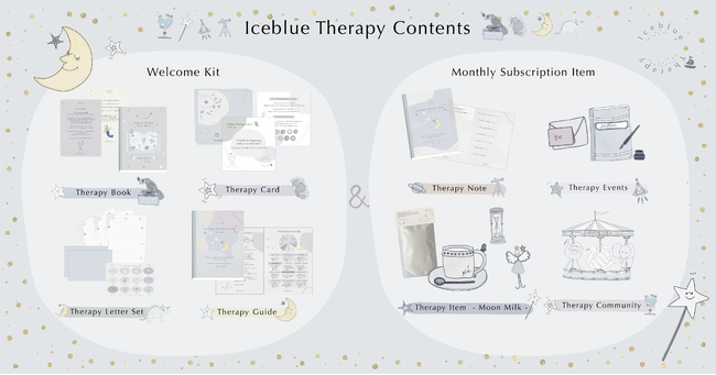 ・Welcome Kitが初回時に届く(Iceblue Therapy Book・Iceblue Therapy Letter Set・Iceblue Therapy Card・Iceblue Therapy Guide)