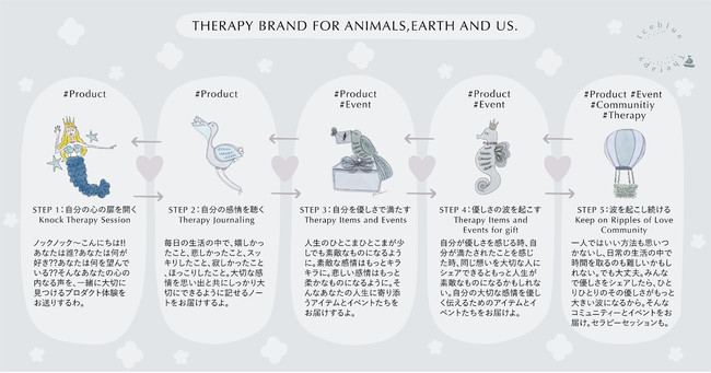 Iceblue Therapy独自の5STEPで、やさしさの波を起こし続け、 動物・地球・私たちを癒します