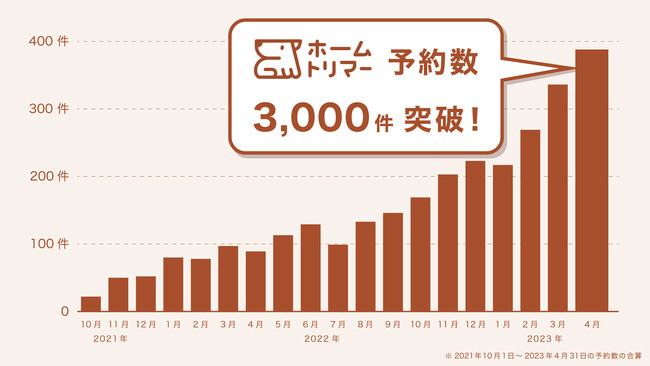 株式会社ホームトリマー(本社:東京都千代田区、代表取締役 : 山瀬 穂高、以下当社)は、2021年10月に開始した自宅出張専門トリミングサービス「ホームトリマー」の予約件数が3,000件を突破したことをお知らせします。
