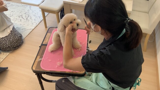 通常、トリミングサロンでの施術はガラス越しで、様子を見られても同室できないケースがほとんどです。当社のサービスは、依頼主の目の前でカットするため、依頼主は細かいリクエストや質問をすることが可能です。細かい仕上がりの要望はもちろん、例えば飼育して間もない方からの普段のケアに関するご相談にも、プロのトリマーがその場でお応えします。