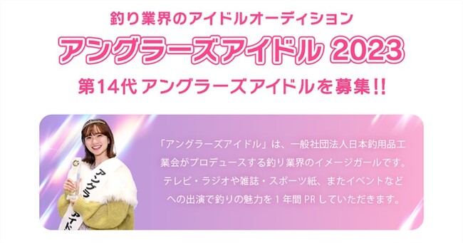 一般社団法人 日本釣用品工業会(所在地:東京都中央区)は、2022年8月22日(月)よりアングラーズアイドル2023『第14代 アングラーズアイドル』の募集を開始いたしました。