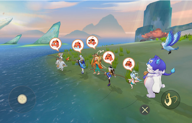 遊び方が豊富であることも『山海』の魅力の1つです。その中でも仲間と遊べる釣りへの人気が比較的高く、エリア各所でその光景を見ることができました。