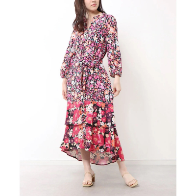 小花柄と大花柄の組み合わせがアクセントになったワンピース。