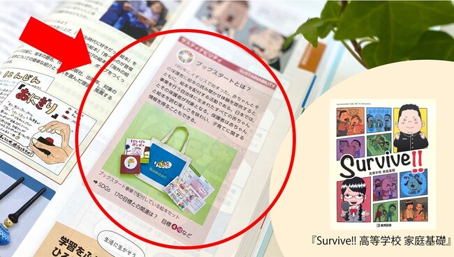 2022年4月から使用が始まった高等学校の教科書『Survive!! 高等学校 家庭基礎』(教育図書株式会社/2022年2月5日発行)に、ブックスタートが登場。子どもの発達や遊び、生活、大人の役割などを学ぶ章の中で「サステナビリティ」に関する取り組みとして紹介されています。ブックスタートが教材として注目される背景には、「持続可能な社会の創り手」の育成を理念に掲げる教育課程の改訂と、SDGs参画への世界的な流れがあります。