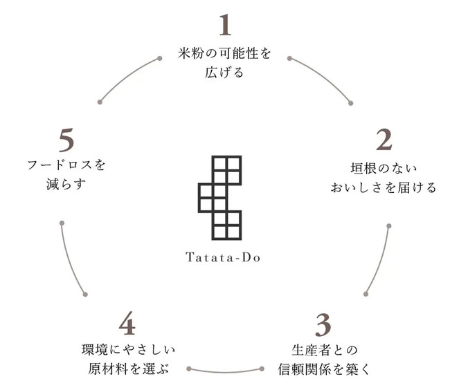 「田田田堂」は、5つの視点を大切に、米粉を巡ってよい循環を社会に生み出し、サスティナブルな未来に貢献します。