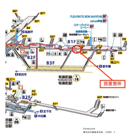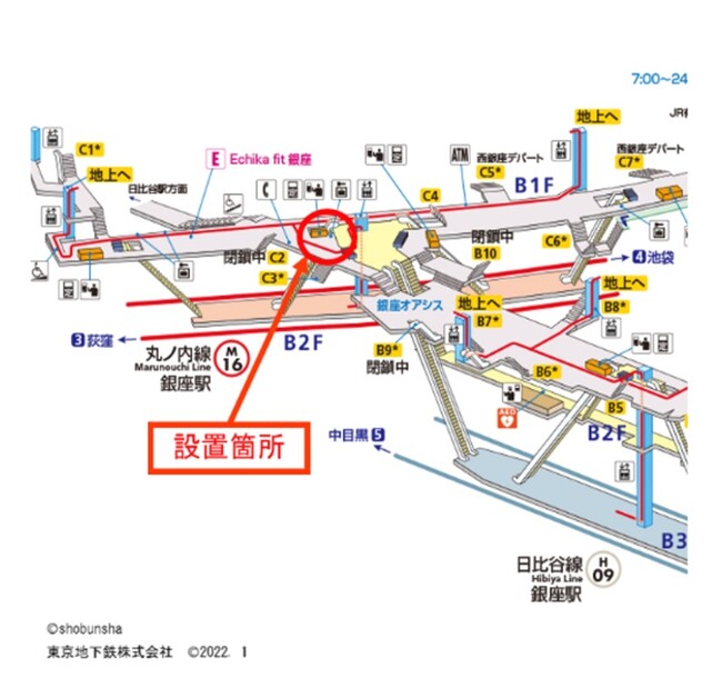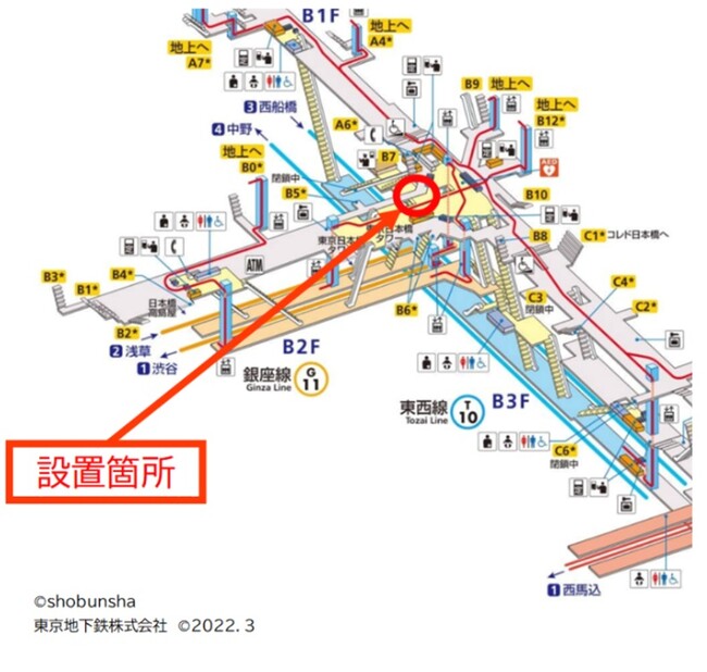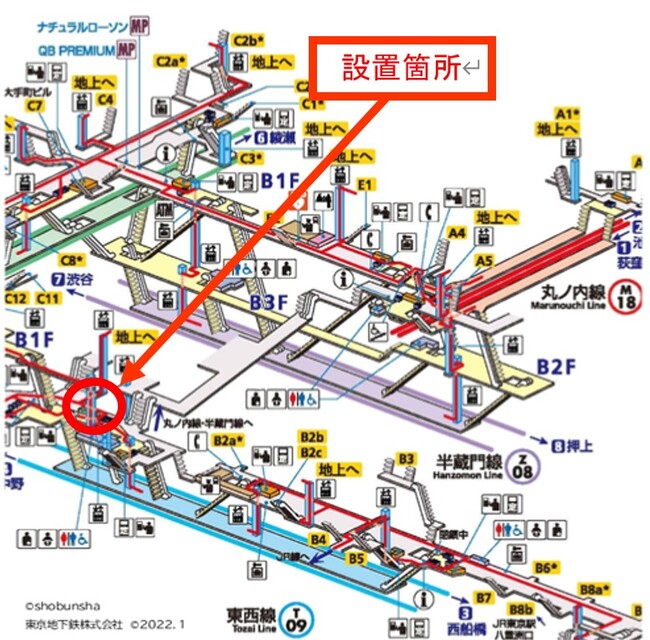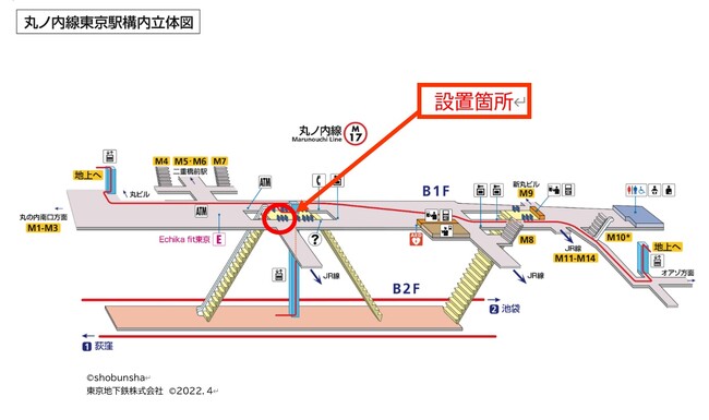 現在、東京メトロ駅構内には、丸ノ内線銀座駅、有楽町線有楽町駅、東西線大手町駅、銀座線日本橋駅に設置しており、今回の丸ノ内線東京駅への設置で5台目となります。