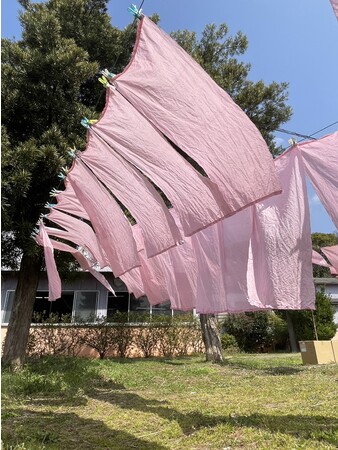 ※染料に使用している熊本城の桜の枝は、熊本城の廃棄樹木の有効活用のため特別に許可をいただき使用しています。