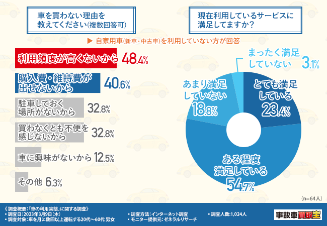 現在のサービスで満足している方が多い一方で、自分の車を持つことに越したことはないと思っている方が多いのかもしれませんね。