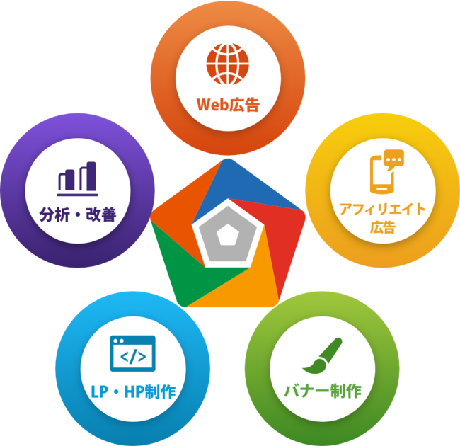 Webプロモーションの実施に必要となる要素の内、基幹となる5つの業務をサポートいたします。