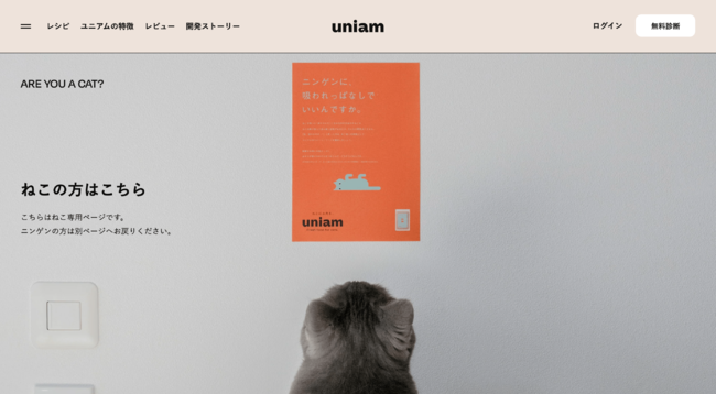 ねこに特化したフレッシュフードを展開するuniamが、ねこ向け広告を公式サイトで公開!