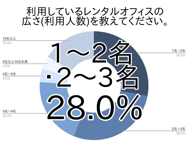 アンケートでは次に、利用しているレンタルオフィスの広さ(利用人数)を尋ねました。