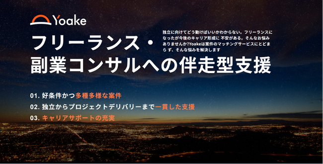 株式会社Ballista(本社:東京都千代田区、代表取締役社長:中川貴登、以下:Ballista)は、2023年4月25日からフリーランス・副業のプロフェッショナル人材が集まる、プロフェッショナルギルド「Yoake」の運営を開始しました。