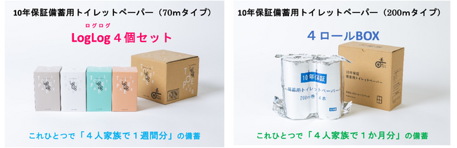 両製品ともに「より家族単位で備蓄しやすいように」という想いを込めて開発し、LogLog4個セットは「4人家族で1週間」、4ロールBOXは「4人家族で1か月」の備蓄が可能となっております。