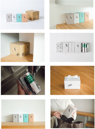 LogLog4個セットは、「1人ひとつ1週間」をコンセプトにした70mタイプのLogLog4個セットを1BOXに格納。4ロールBOXは、200m長尺タイプ4ロール1パックを1BOXに格納しました。