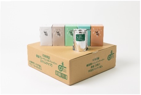 また10年保証備蓄用トイレットペーパー4Rパック×3パック(LT-101)は、大阪府庁への納入を皮切りに、全国約130以上の自治体でご採用いただいているほか、一般企業のBCP対策品、個人備蓄用として、累計60万ロール以上の販売実績を有するロングセラー商品となっています。