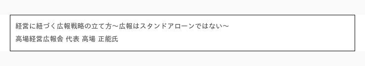 ・経営に紐づく広報戦略の立て方〜広報はスタンドアローンではない〜(高場 | 30分)