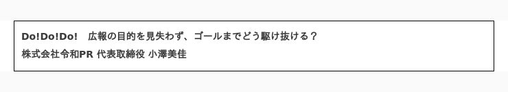 ・Do!Do!Do! 広報の目的を見失わず、ゴールまでどう駆け抜ける?(小澤 | 20分)