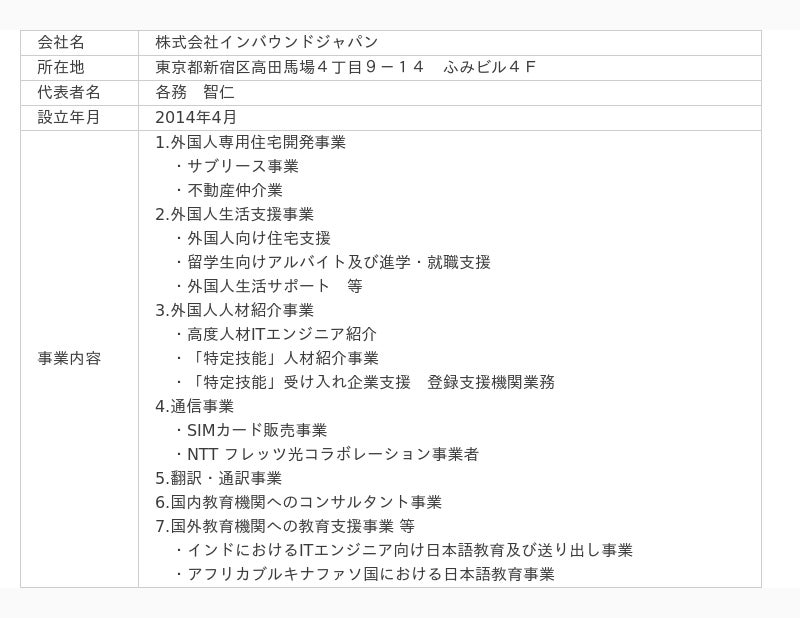 株式会社インバウンドジャパンは、外国籍向け住宅整備事業を主軸に事業を展開しています。