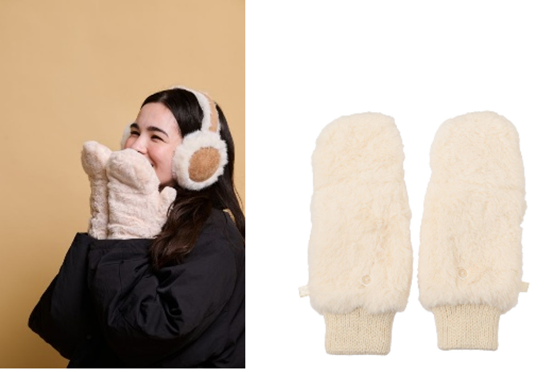 ふわふわのフェイクファーで見た目もあたたかさを感じられる手袋です。手首は風を通しにくいリブ仕様で保温性も抜群です。