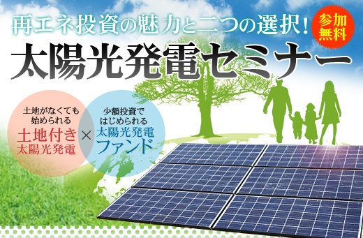 土地付太陽光発電・太陽光発電ファンドいずれのセミナーも無料。