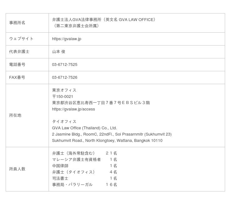 更にGVAは、激動の時代の中で企業のグローバル展開を支援するため、東南アジア地域における支援体制を強化してきた。GVA自身も積極的にグローバル展開を推し進め、2017年にタイ法人を設立し、米国、欧州、シンガポールを中心とするアジア各国の弁護士事務所と連携する等事業展開している。