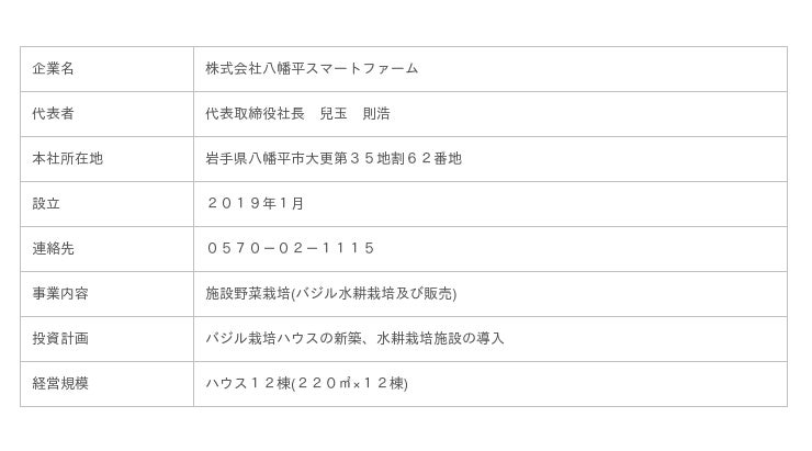 八幡平スマートファーム、IoTを活用したバジルの養液栽培ハウスを新設 〜日本公庫、岩手銀行、いわぎん事業創造キャピタルの3行が協調融資・出資〜