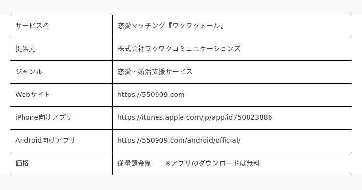 恋愛・婚活を目的とした出会いのきっかけを提供するために、”恋愛マッチング『ワクワクメール』”という名称でサービスを提供しています。
