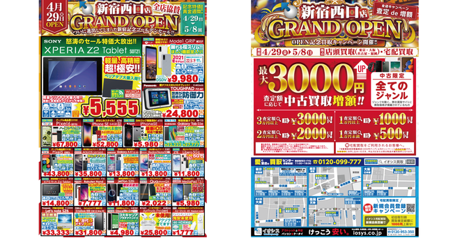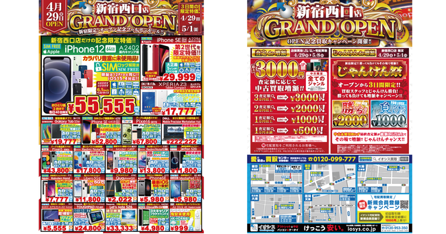 東京・大阪・名古屋・福岡に9店舗を展開する株式会社イオシスが、東京エリアでは秋葉原以外に初の店舗となる新宿西口店を4月29日(金)にオープン。4月29日(金)〜5月1日(日)の3日間はオープン記念セールを実施します。