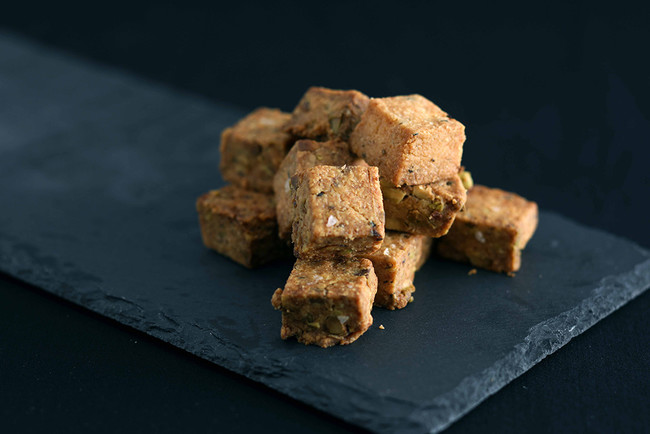 趣向を変えて、パルミジャーノ・レジャーノの旨味たっぷりのおつまみです。しっかりときいた胡椒の辛さの奥から、クミン/ピスタチオの風味が鼻に抜けていきます。 サワークリームやイクラ等の魚卵と合わせれば立派なフィンガーフードに。シャンパーニュとの相性も抜群です。